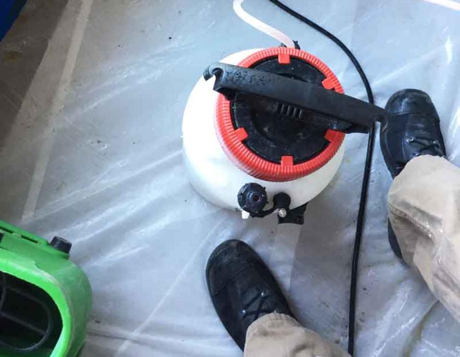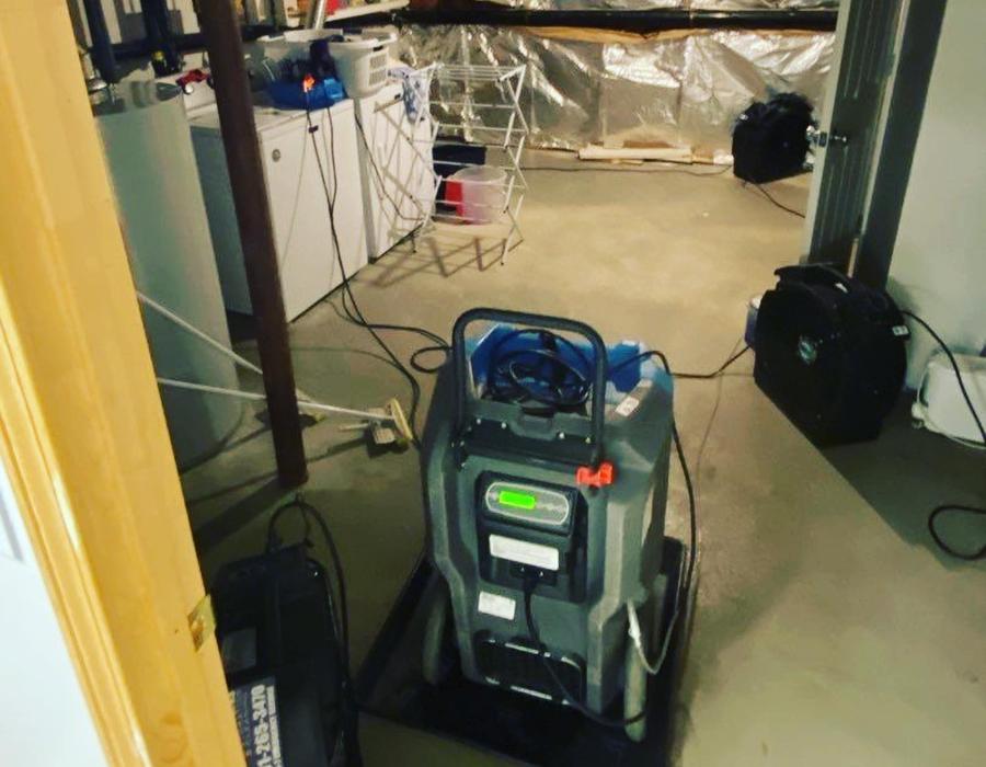 - Air movers, dehumidifiers, and air filtration equipment are used during the drying process.